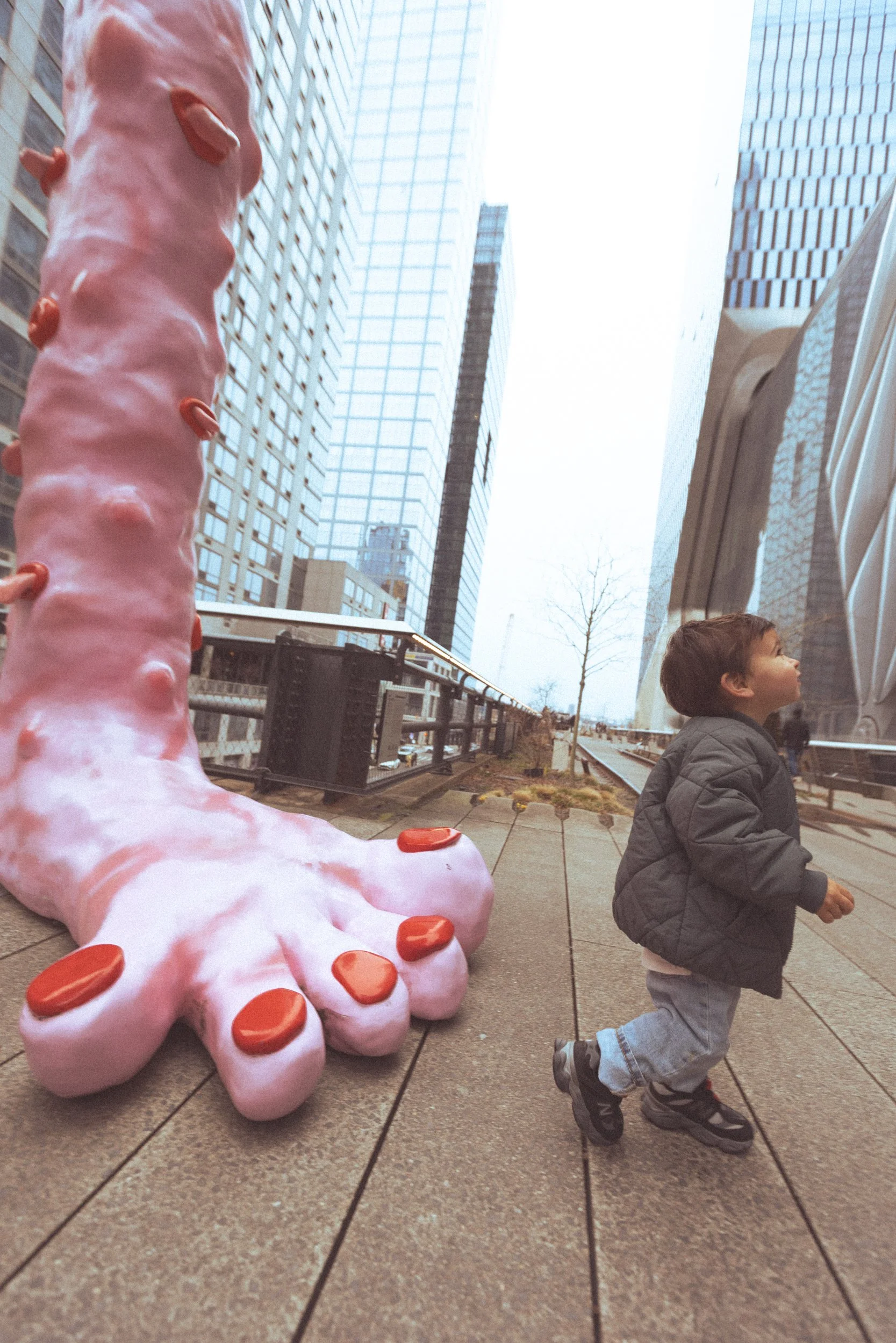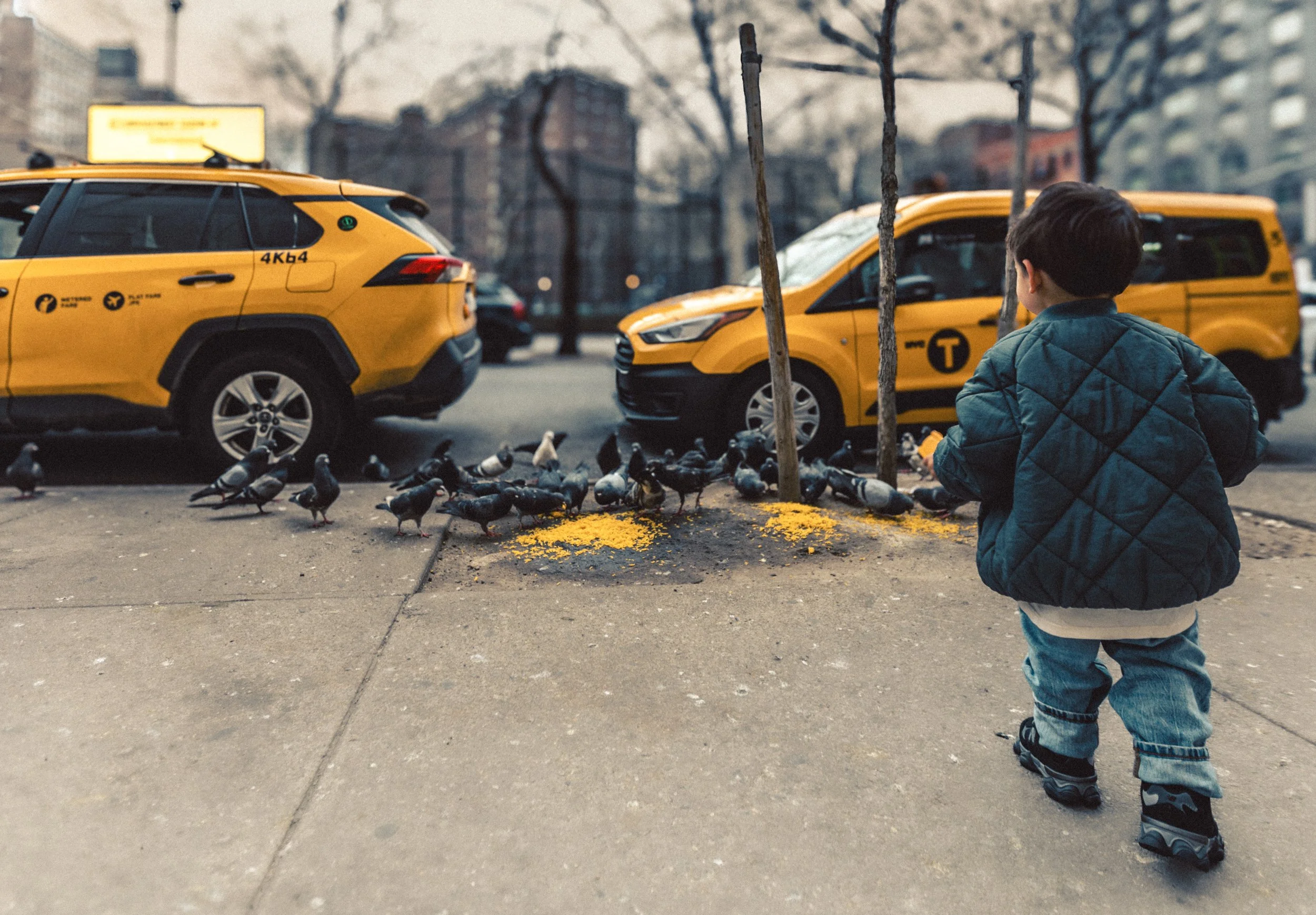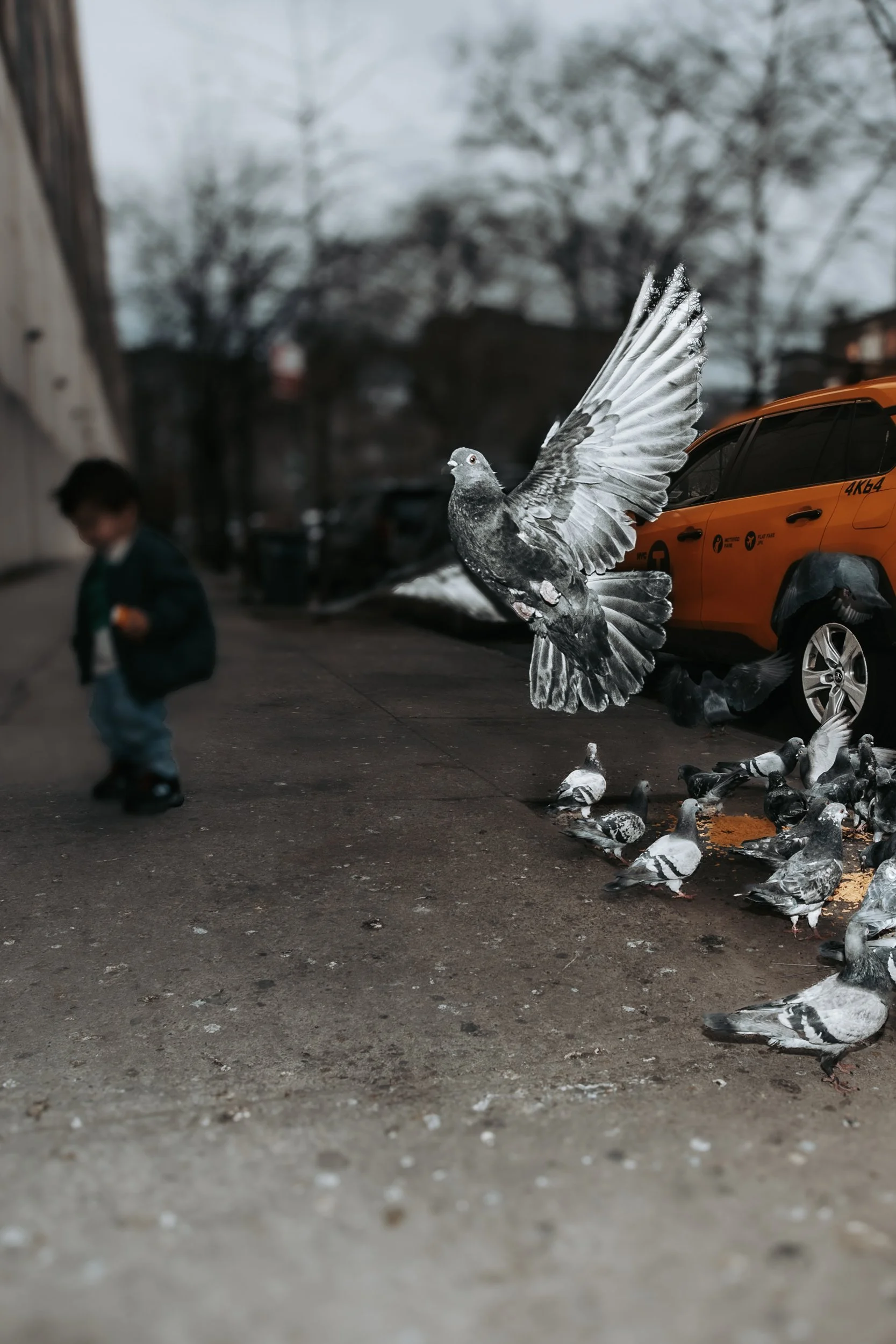 Today Wolfe and Veronica were in town from California to visit her sister, and decided to have a short NYC day out shoot. We kept it really simple in terms of using one outfit, and one specific location. The decision was mostly based on the day (it was totally drizzling as we walked home), and how close we started to the HIGHLINE!!! We utilized the natural habitat (hehe, pigeons and TAXIS!) as you can see here, which was so much fun for Wolf. Letting him lead most of the time led us to getting some really authentic gestures, expressions and backgrounds.