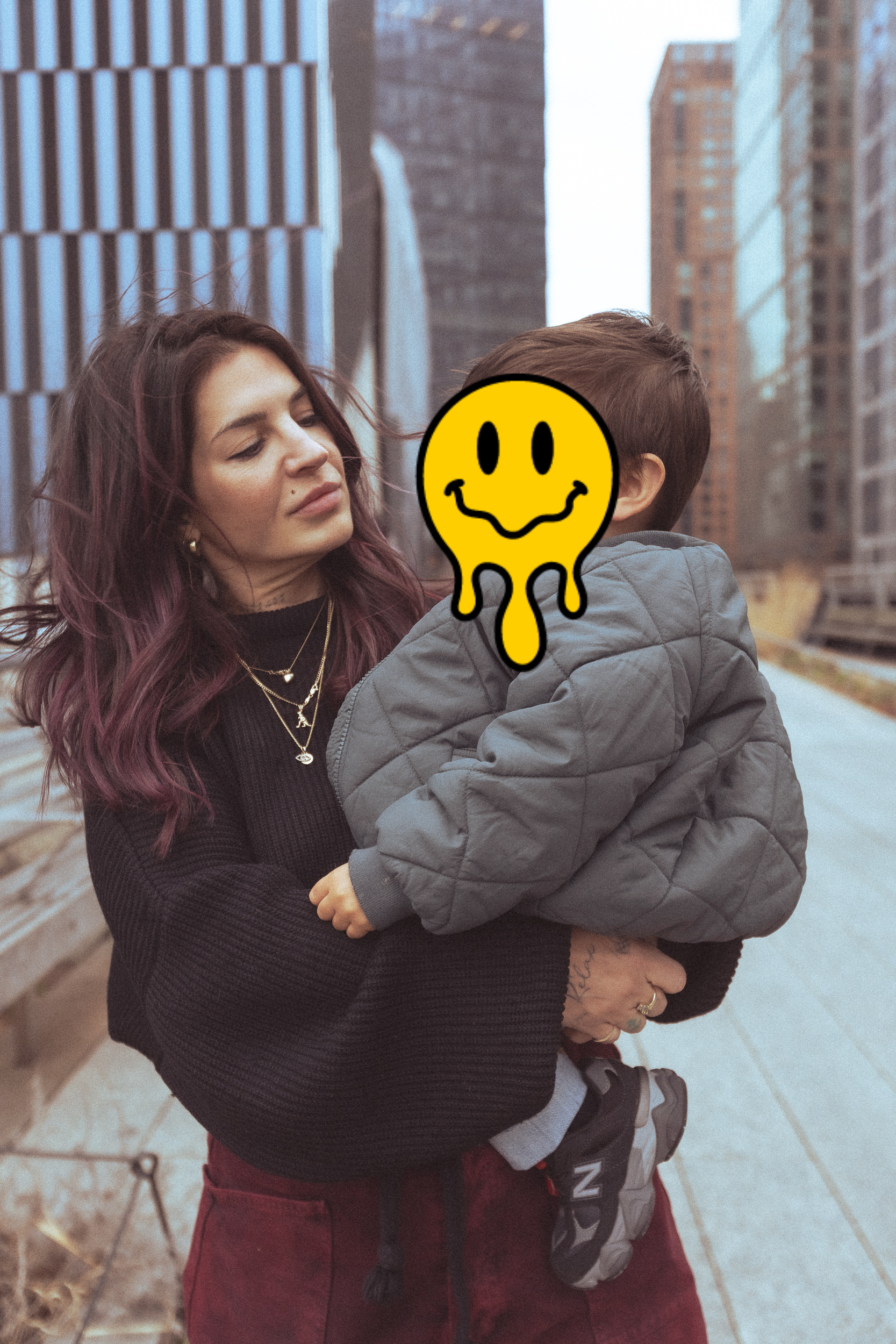 We take out the flash and start clicking away but then I shift. I want more access to his movements. I want him to be in motion and “fly be free” as Savannah my assistant calls it. So we take off the flash. I change my settings and start burst shooting my tiny friend as we head to the highline. I know my mission is part adorable face but also equally to create a mood, a memory of time and space with images that aren’t his face. Social media is a weird place and my friend Veronica has a large platform. In many ways Veronica has been a muse to my portrait work, always encouraging and always saying yes. Even the request for images without his face challenges me in the best way. In less than an hour we keep Wolfe entertained, get our steps in, catch up, and create images that someday will be looked at again with a much deeper meaning than they hold today. It ended up being the perfect sky, perfect nap, and perfect day to capture their New York adventures and I know from experience we will be doing it all over again very soon.